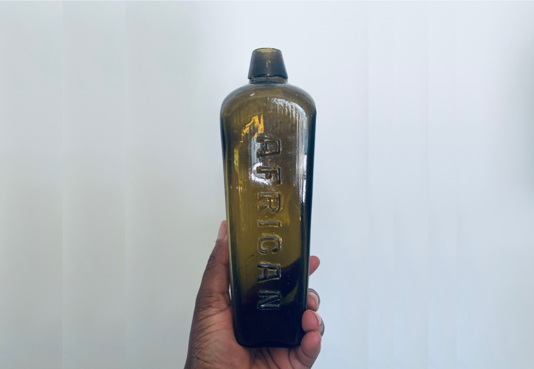 “Square face” Dutch gin bottles that were traded in Africa from the mid 19th century.